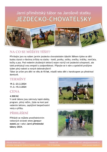 Další informace vám rádi podáme na e-mailu tabory@jarosuvstatek.cz nebo na tel.: 724 348 107.