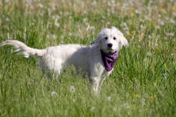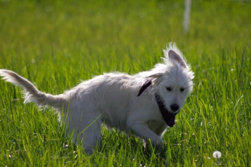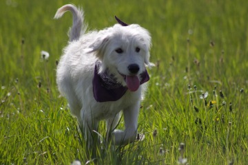 já jsem Happy. Narodila jsem se 20.11.2019 na Slovensku. Když mi byly necelé 2 měsíce, spadla jsem z velké výšky a pak mi přestaly fungovat zadní nožky. Najednou jsem nemohla běhat a hrát si se svými ostatními sourozenci. Mí bývalí páníčci mě vzali k doktorovi, že prý takový pejsek nemůže mít pěkný život. Říkali něco o utracení, ale moc jsem tomu nerozuměla. Naštěstí paní doktorka řekla, že to nedovolí a domluvila mi společně s organizací OZ Môj Život dočasné bydlení u paní Eleny Krajciové. Tam se mnou začali cvičit a já jsem zase pomalu začala dělat první krůčky. Nebydlela jsem tam ale moc dlouho, protože si pro mě přijeli moc fajn lidi a já s nimi odjela na velkou cestu do České republiky na místo zvané Jarošův statek. Je tu krásně a žije tady plno dalších zvířátek. Mí noví páníčci se mnou pokračovali v mé léčbě a také díky nim mohu dneska zase běhat a naplno si hrát. Získala jsem také svou patronku Anetu Poukarovou, která se mnou ještě stále cvičí, hraje si se mnou a učí mě nové věci každý den. Už umím přes 60 povelů!