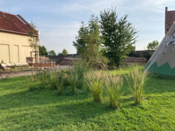 V areálu se nachází indiánské teepee, před touto stavbou bylo vysazeno 20 ks trvalek a travin a 5 ks keřů. Většina listnatých keřů v projektu byla vybrána s ohledem na podporu hnízdění ptactva, tj. trnitých a s plody. Slouží nejen k pozorování a vnímání těchto rostlin, ale také zde hnízdícího ptactva.
