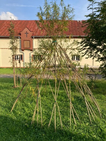 Individuální výsadba před látkovou stavbou (teepee)
