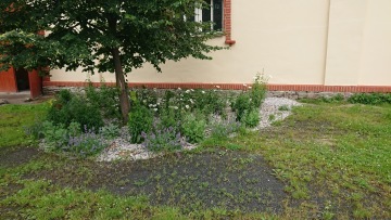 Pro zvýšení biodiverzity bylo vysazeno 6 ks listnatých stromů (viz seznam stromů, keřů a rostlin). Využity byly k pozorování rostlinné říše všemi smysly, uvědomění si proměn a potřeb stromů v průběhu ročních období a rozvoji pohybových aktivit a her. Stín stromů přispívá k příjemné relaxaci v letních měsících.