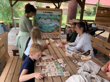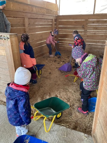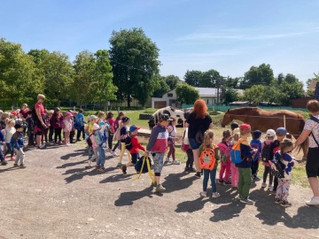 Kromě přímého kontaktu se zvířaty si děti mohly vyzkoušet běžné farmářské činnosti a jednoduché práce – místování a stlaní boxů, nošení sena, zametání stájí. Součástí některých programů byla i tvořivá dílnička, kde děti vyráběly výrobky z přírodních materiálů – sena, slámy, pilin nebo vlny našich oveček, naučné hry s ekologickou tématikou nebo pohybové hry. V naší přírodní zahradě máme také spoustu krásných vzrostlých stromů. Díky zakoupeným pomůckám a interaktivním prvkům ze společnosti Lesní svět se děti formou hry dozvěděly v rámci programů spoustu zajímavých informací a měly možnost sledovat, jak se příroda v průběhu roku proměňuje.