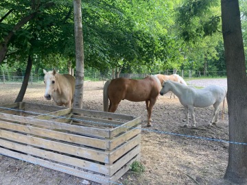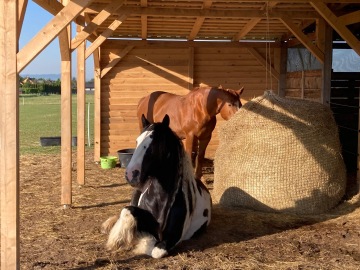 10 boxů ve venkovní stáji (z toho 2 porodní), úvaziště