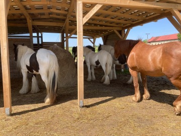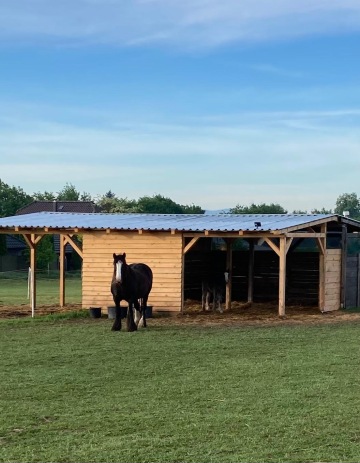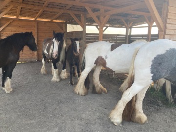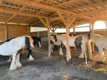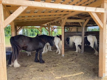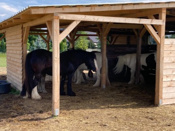 4 venkovní přístřešky pro koně (10 x 7,5 m, 10 x 5, 9 x 5 m, 6 x 3 m)