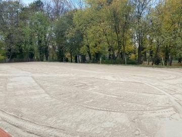osvětlená písková jízdárna 20×40 m s novým pískem a nástupní rampou pro vozíčkáře